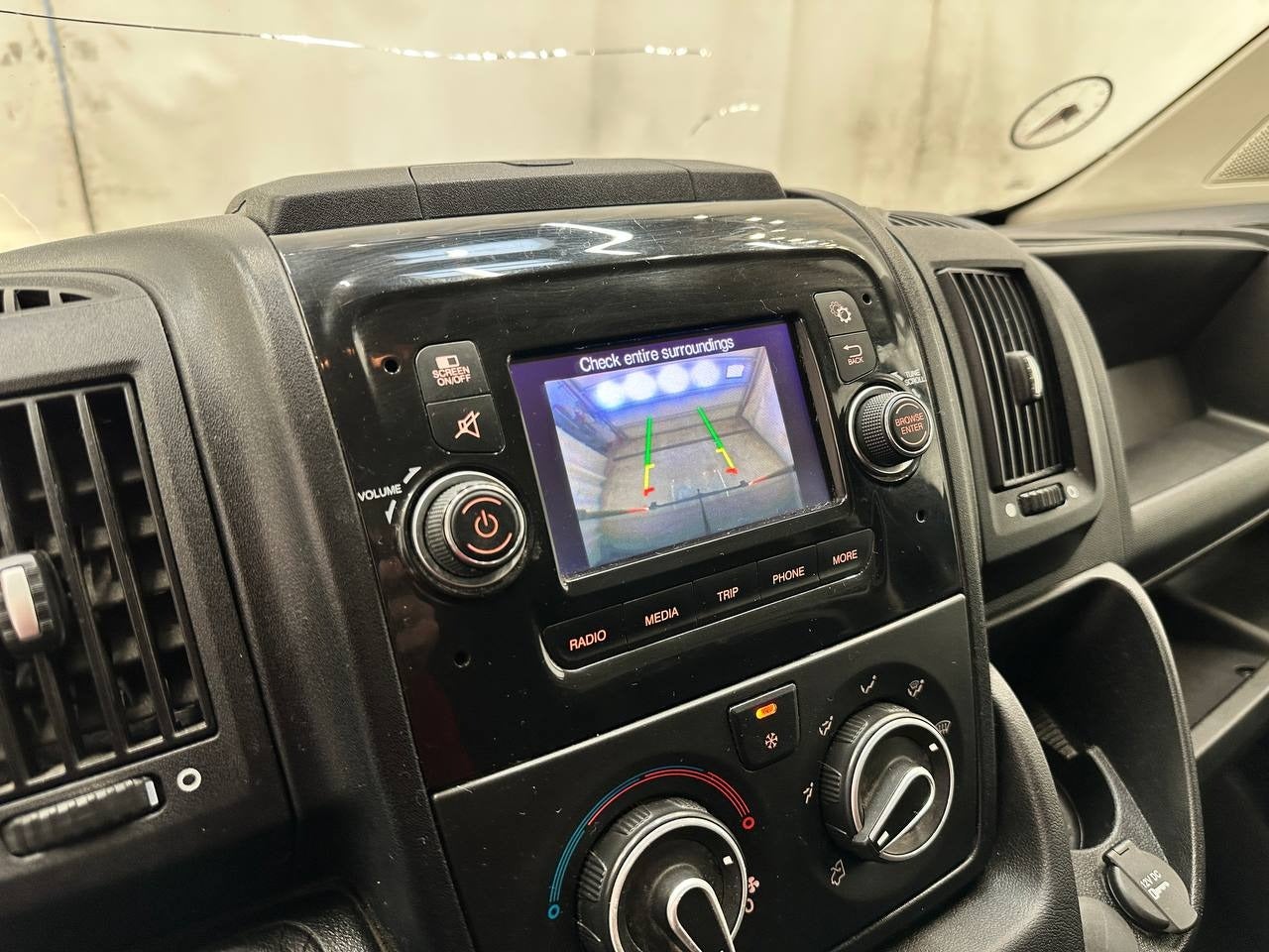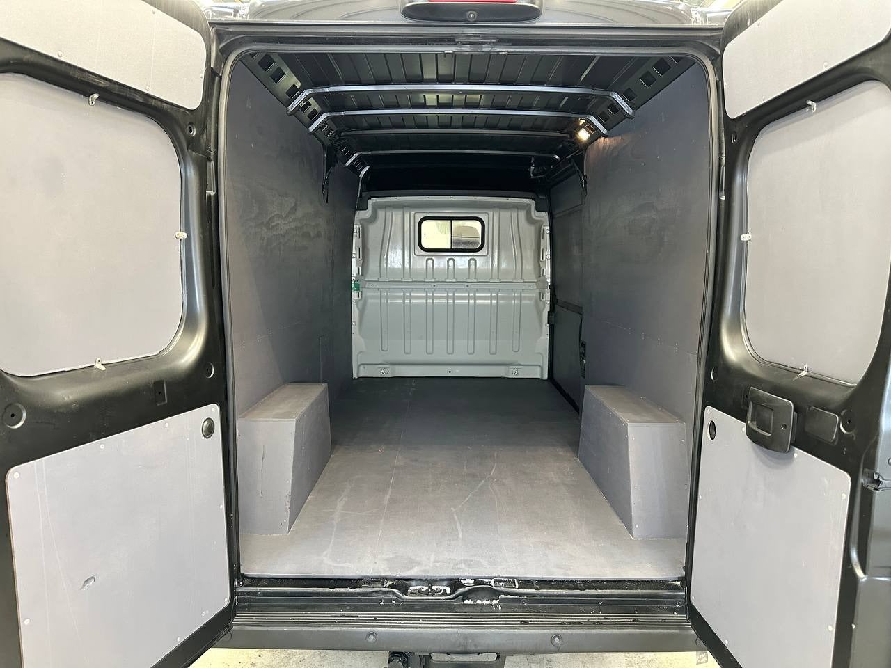 Stort og regulært varerum med sidebeklædning, LED-lys og fast bund – klar til håndværk eller montage. Kabinen fremstår pæn og velholdt. Dæk med godt mønster. Almindelige lette brugsspor.